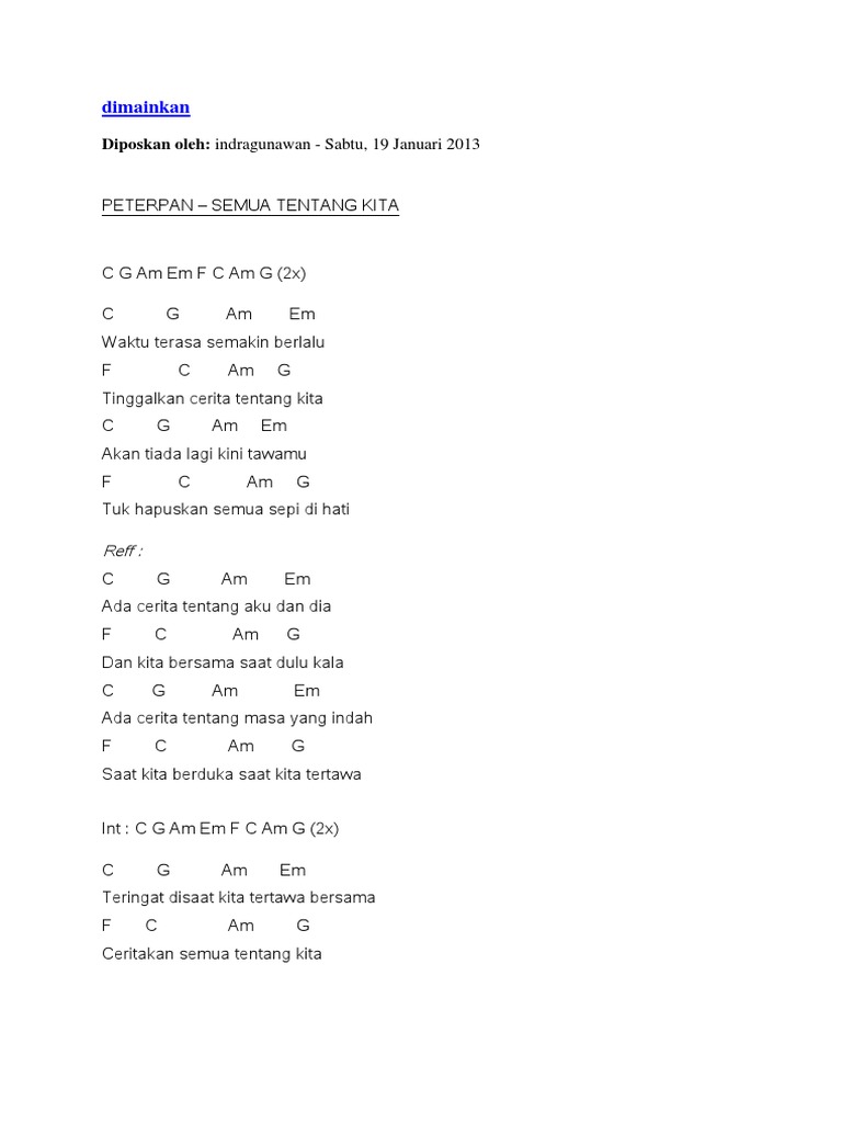 Peterpan Semua Tentang Kita Chord Chord Walls - 17 january 2021 / ge mahendra.