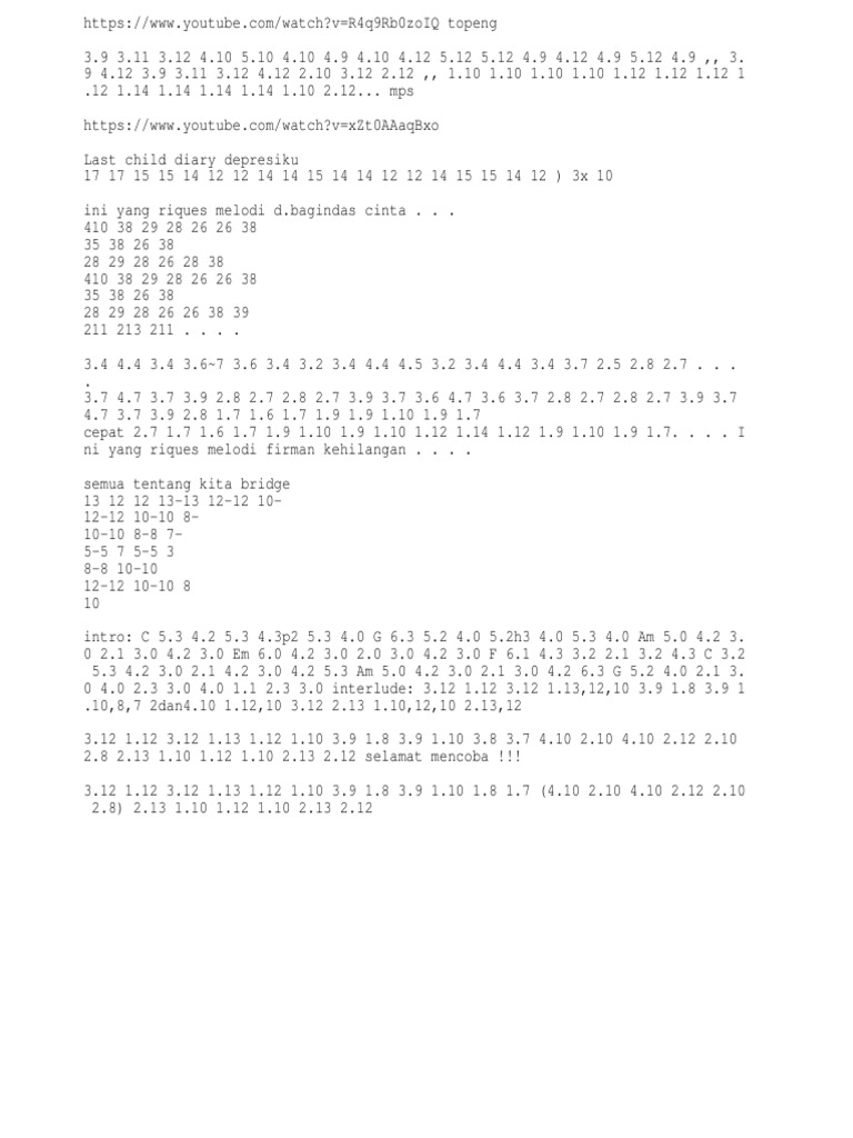 Not Angka Peterpan Semua Tentang Kita / Not angka/ melodi, jangan akor nya. Not Angka Peterpan Semua Tentang Kita / Waktu terasa semakin berlalu tinggalkan cerita tentang kita akan tiada lagi kini tawamu tuk hapuskan.